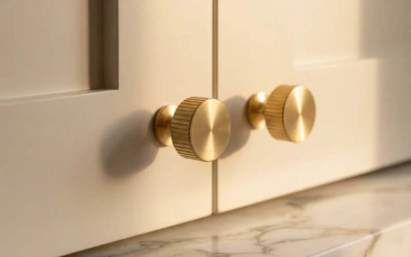 Knobs suit upper cabinets and small drawers. They are compact, unobtrusive, and work well on traditional cabinetry. A round or reeded knob in satin brass can elevate a simple Shaker door without overwhelming it.