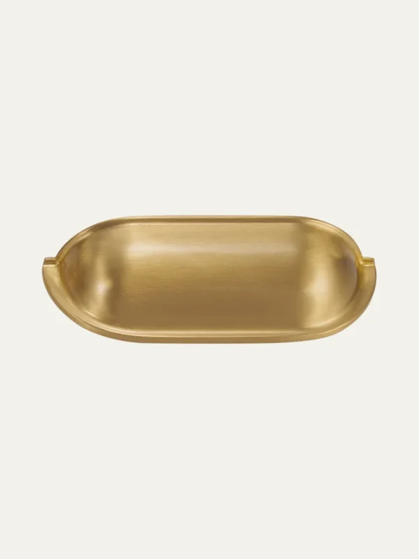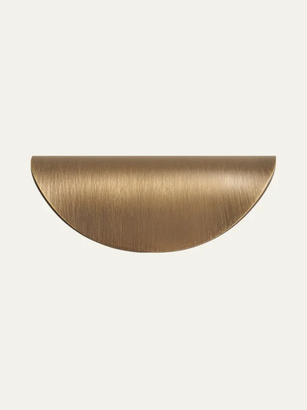 Solid brass cup pulls with a classic bin-pull silhouette, shaped to sit flush against the drawer face. Weighted, comfortable in the hand, and available in a range of heritage and contemporary finishes.