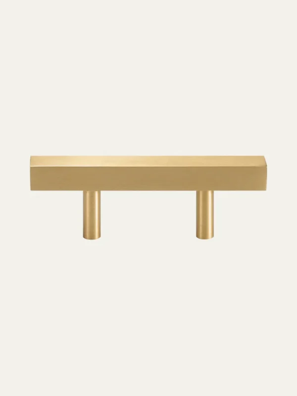 A solid brass half-moon cup pull with a clean, contemporary profile. The smooth shell curves gently from a flat top edge into a rounded base, creating a comfortable finger grip that sits almost flush against the drawer front. Available in two shell widths - 76mm and 92mm - both sharing a 64mm centre-to-centre fixing. Paired in satin brass and unlacquered brass, with the unlacquered option developing a living patina over time.