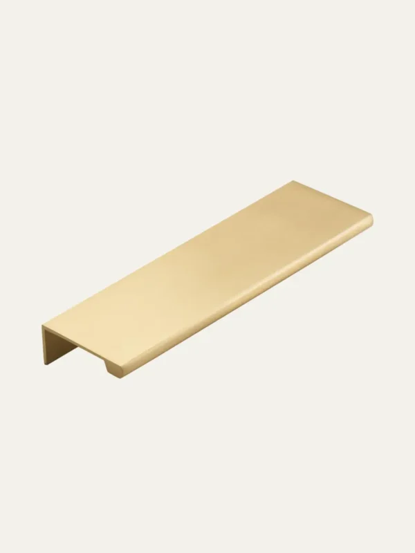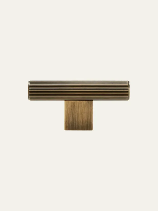 A fluted brass pull with a distinctive ridged rectangular bar and clean square feet. The linear pattern runs the full length of the bar, creating a refined contemporary look that pairs beautifully with modern and transitional cabinetry.