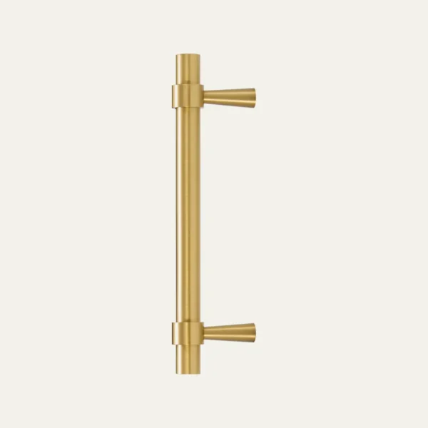 Machined from solid brass with a 10mm bar diameter and proportionally larger feet. The handle maintains the same refined profile as the smaller pulls in the collection, just at a scale suited to full-height appliance panels.
