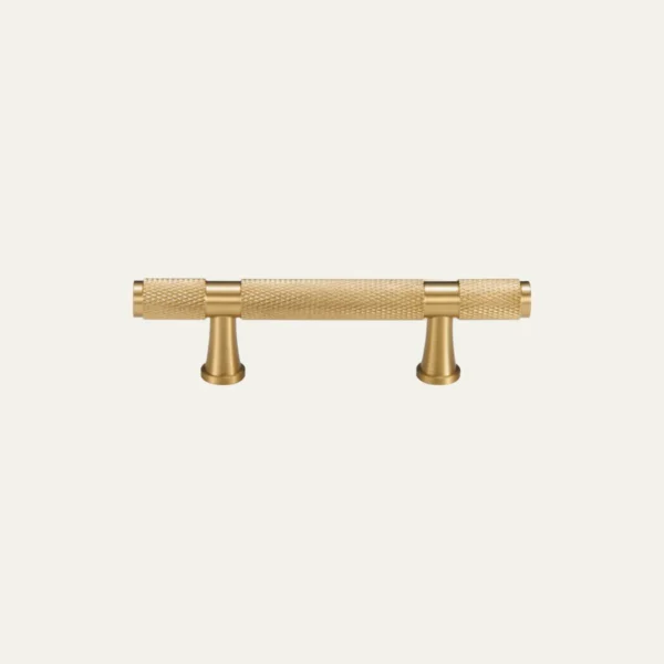 Solid brass pull handle with knurled detailing and decorative cone feet. Available in seven sizes from 64mm to 320mm centre-to-centre. Sold individually.