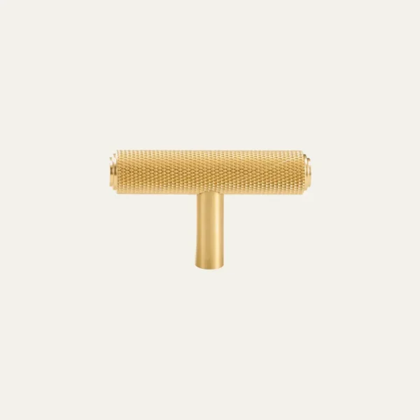 The knurled version of the Tetbury T-Bar, with diamond-cut texture along the full bar length. The same stepped end details as the plain version, with added grip and visual interest.